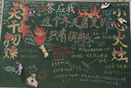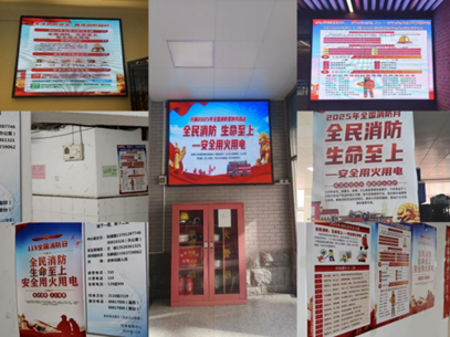 后勤与基建处打造全方位宣传矩阵,一方面充分发挥电子屏的传播优势,循环滚动播放主题鲜明、图文并茂的消防宣传海报;另一方面通过黑板报进行宣传展示。营造“人人关注消防、人人学习消防”的浓厚氛围,推动消防安全理念入人心。